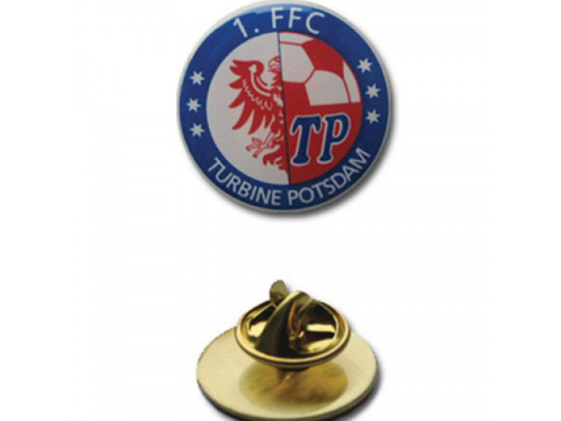 Glänzender, runder Pin mit Vereinslogo und Butterfly-Verschluss.