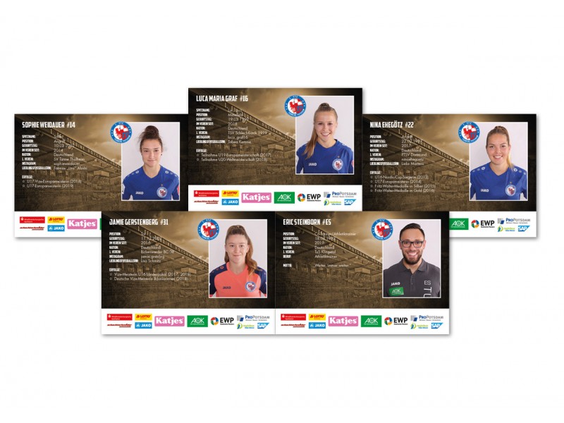 Autogrammkartenset unsigniert der Saison 2021/2022. Komplettes Set aller Spielerinnen und Trainer Team Alle Autogrammkarten sind beidseitig bedruckt.