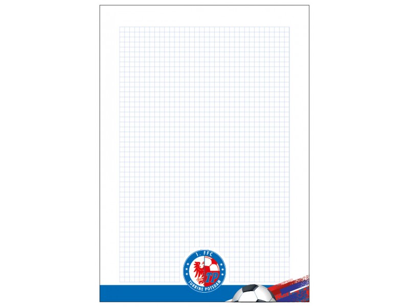 Karierter DIN A4 Block mit blauem Umschlag und Klebebindung.